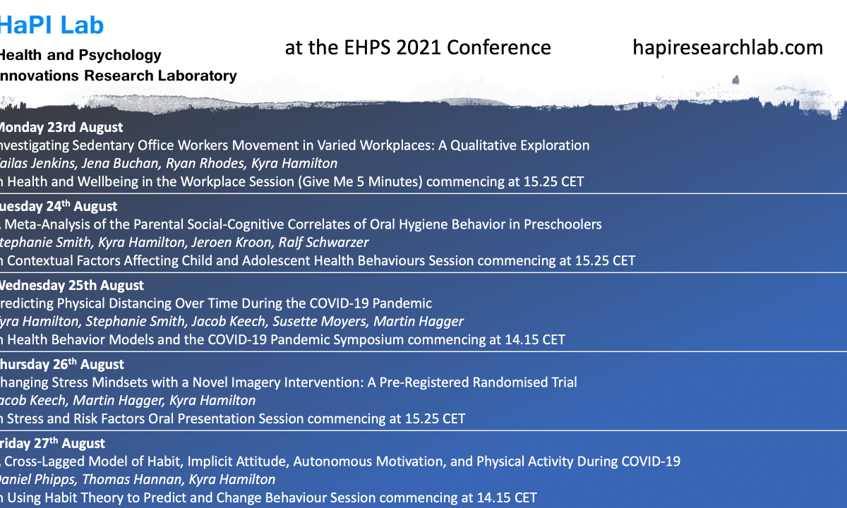 Members of the HaPI team (A/Prof Kyra Hamilton, A/Prof Amy Mullens, Dr Jacob Keech and Dr Daniel Brown) presented in the APS COVID Showcase in 2021. Health Psychology research and practice is well placed to make an important contribution to the response to COVID-19—from uptake of behavioural and pharmacological protective practices, to addressing longer-term social, ...