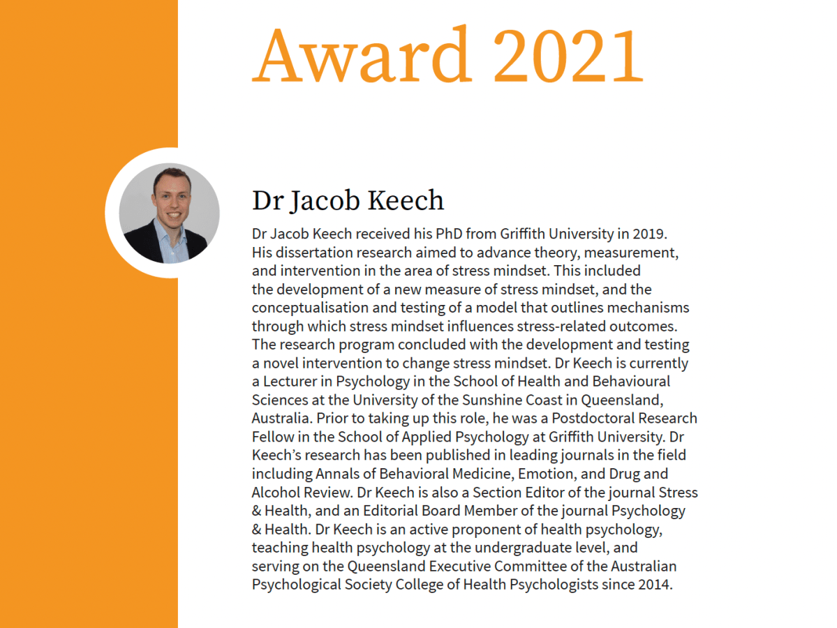 HaPI Lab graduate Dr Jacob Keech has been awarded the 2021 Herman Schaalma PhD Award at the European Health Psychology Society Annual Conference. The Herman Schaalma Award is awarded annually to acknowledge a PhD dissertation in the field of health psychology of outstanding excellence in terms of originality, significance and rigour. The award aims to ...