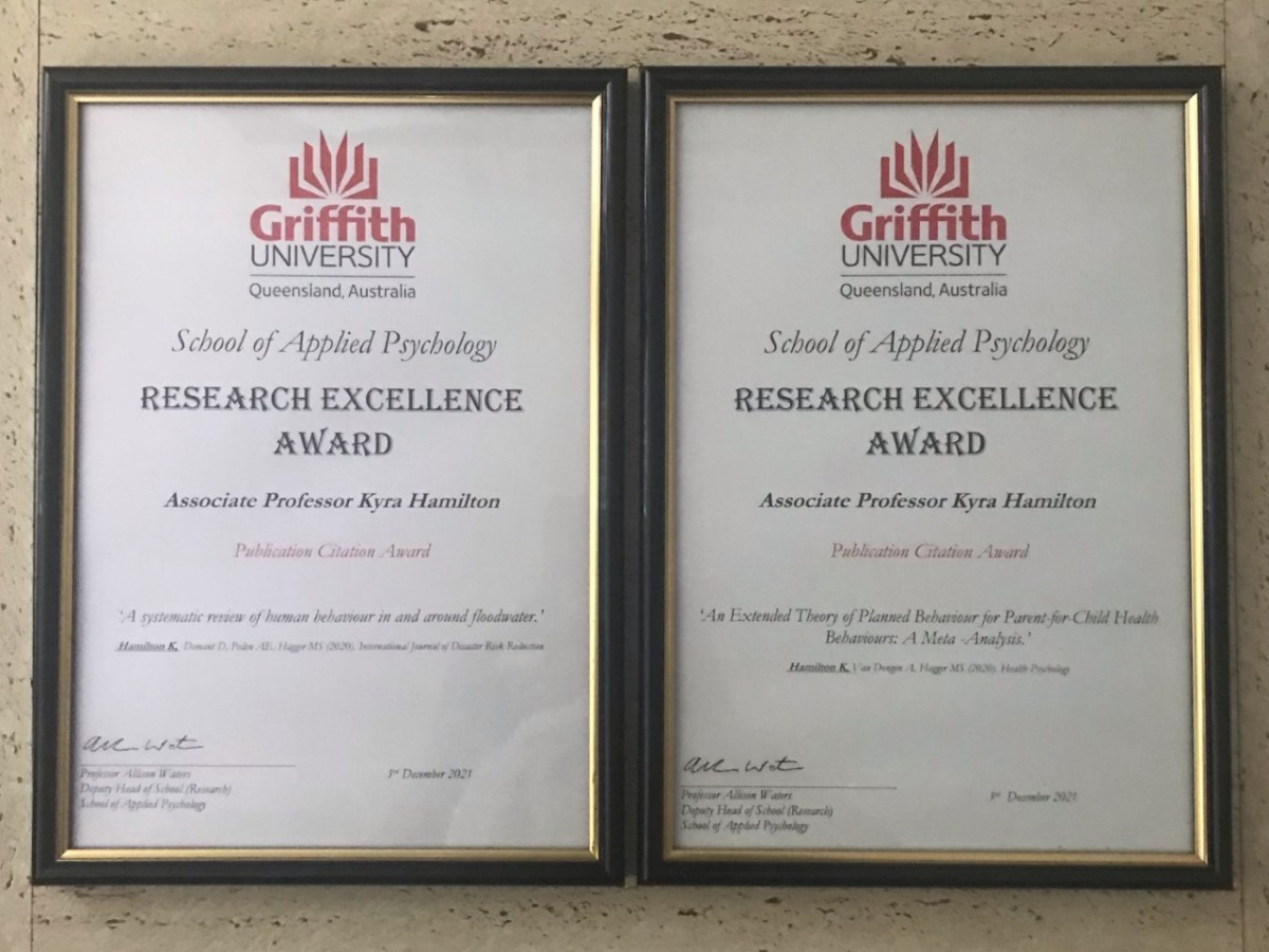 A big congratulations to Associate Professor Kyra Hamilton for receiving Griffith University’s Research Excellence Award!