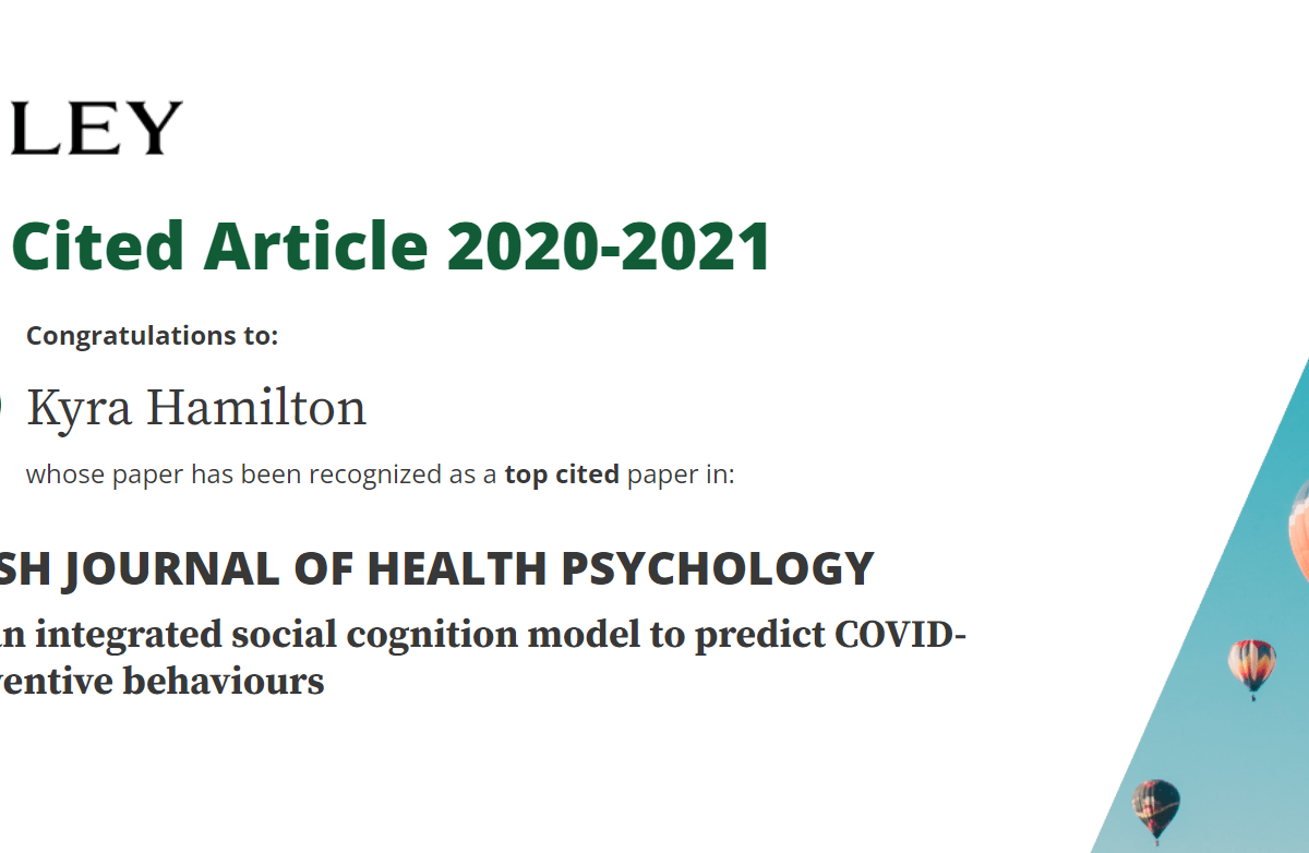 Congratulations to Associate Professor Kyra Hamilton for having her paper recognised as one of the top cited papers in the British Journal of Health Psychology!