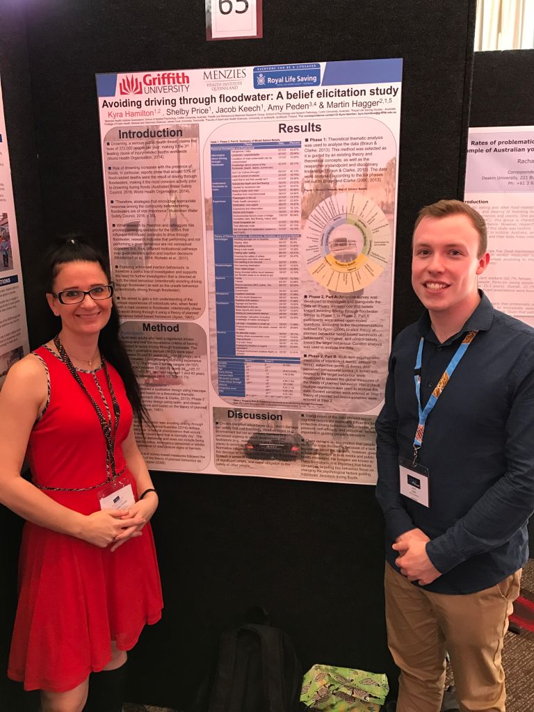HaPI researchers Dr Kyra Hamilton and Jacob Keech presenting a two-phase mixed-method study on the processes underpinning decisions to avoid driving through floodwater at the 2016 International Congress of Behavioral Medicine in Melbourne, Australia