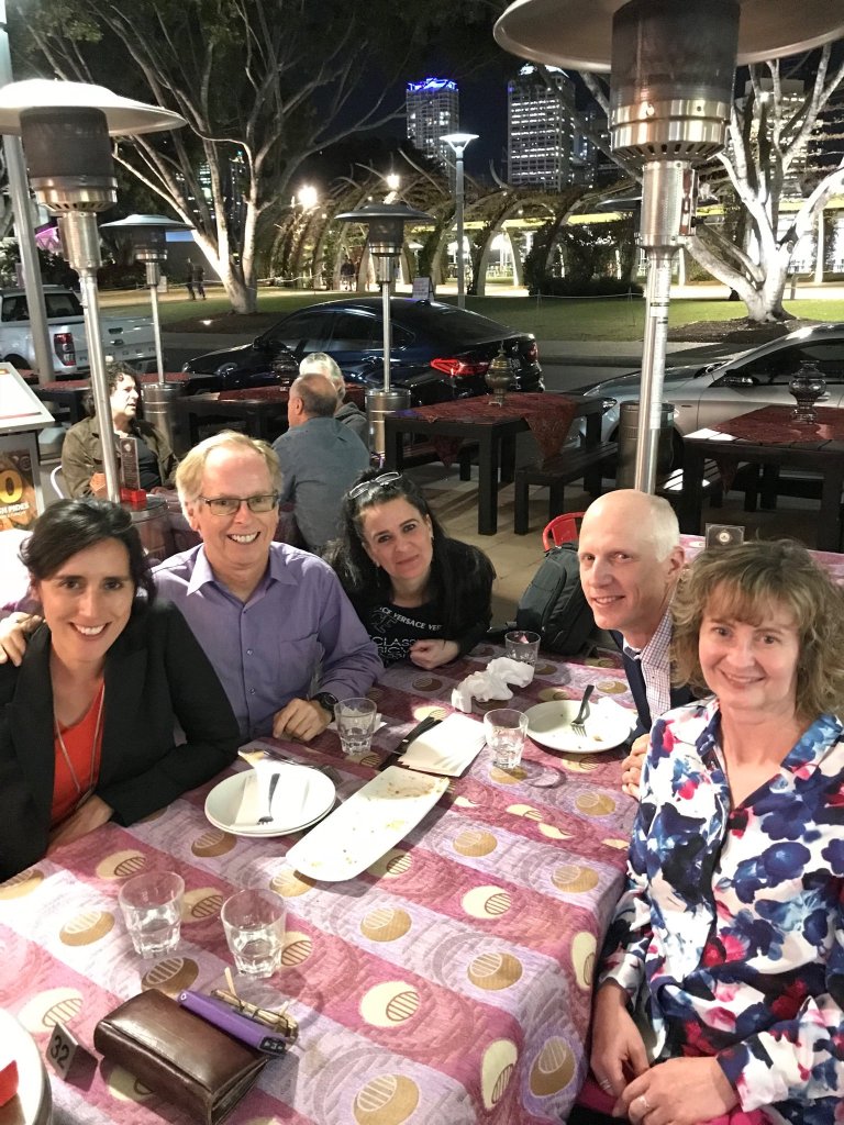 Lovely dinner with Professor Jim Sallis, Dr Nicola Burton, discussing everything from kids schooling to open access publication in the wonderful city of Brisbane in July 2018